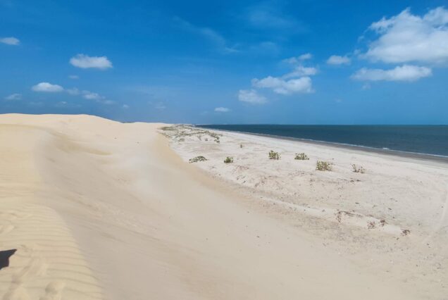 Este passeio em veículo 4×4 proporciona uma imersão nas paisagens mais preservadas do litoral maranhense, combinando praias selvagens de mar aberto e o cenário singular das dunas dos Pequenos Lençóis. Ao longo do trajeto, os visitantes percorrem diferentes praias, com parada para banho em uma das mais belas faixas de areia da região. No período chuvoso, o tour é enriquecido pela visita às lagoas sazonais, oferecendo momentos de relaxamento e contato direto com a natureza. A experiência se encerra com retorno à pousada, após um dia de exploração e contemplação.